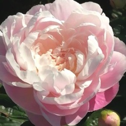 kleur zacht roze met wit, gevuld bloeit van mei tot juni familie Paeoniaceae